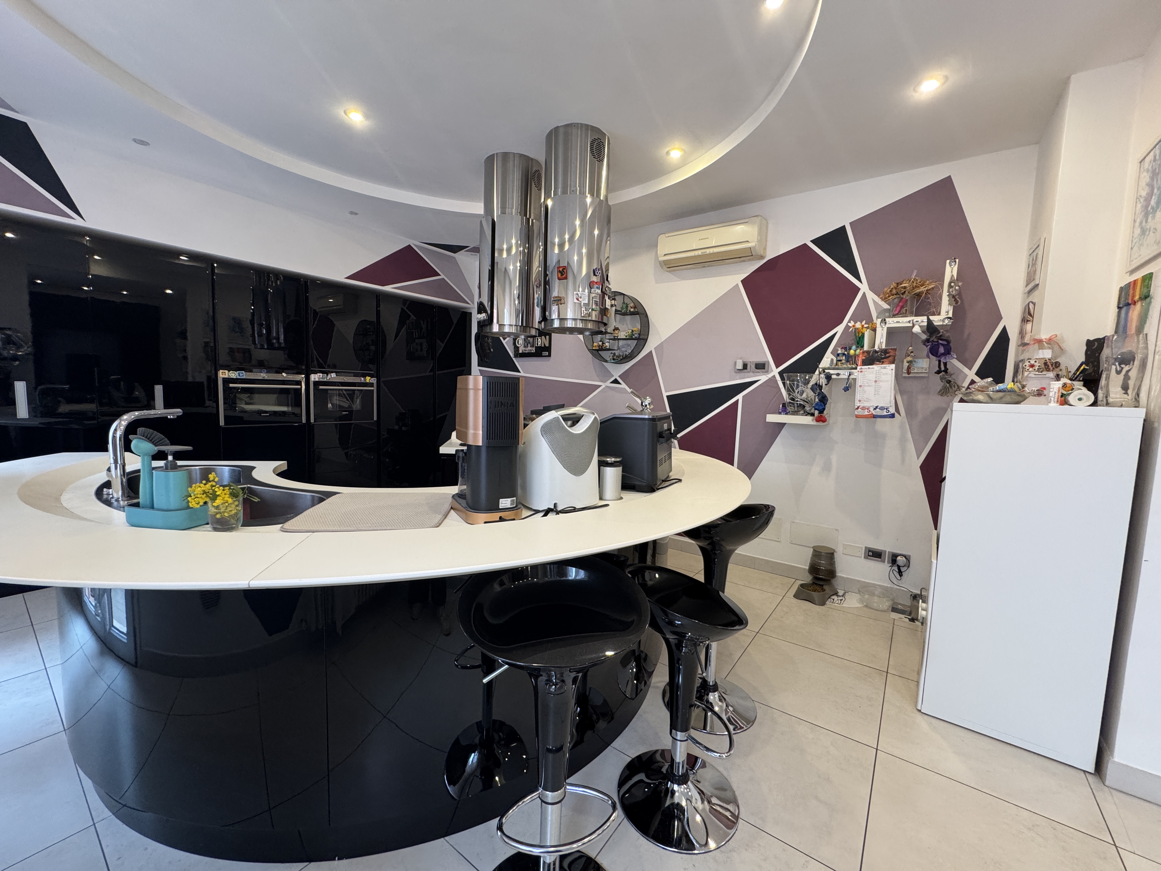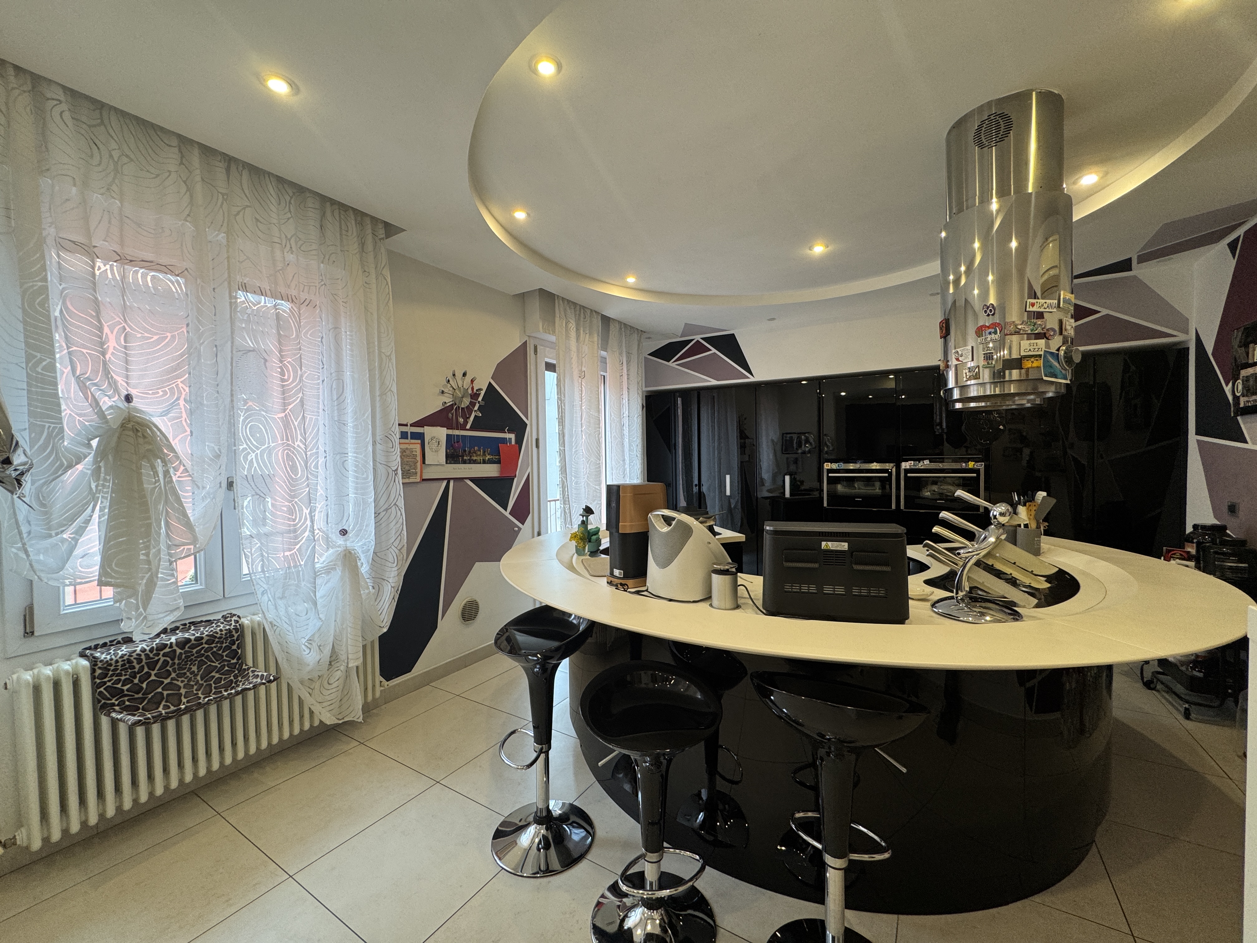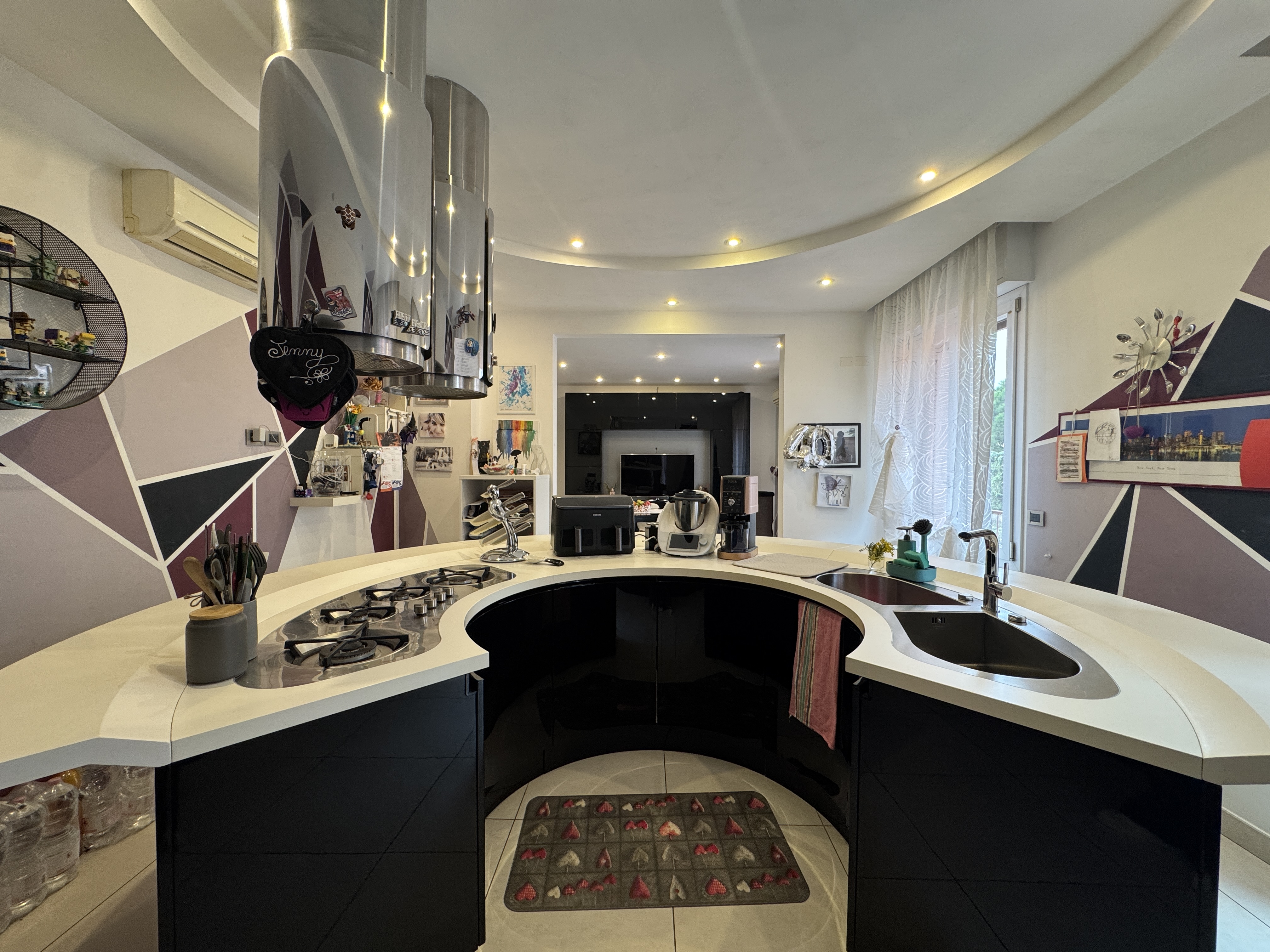 IN ZONA COMODA A TUTTI I SERVIZI, COMPRESO DI BELLISSIMA CUCINA CON GRANDE PENISOLA CIRCOLARE E ARREDI SU MISURA.