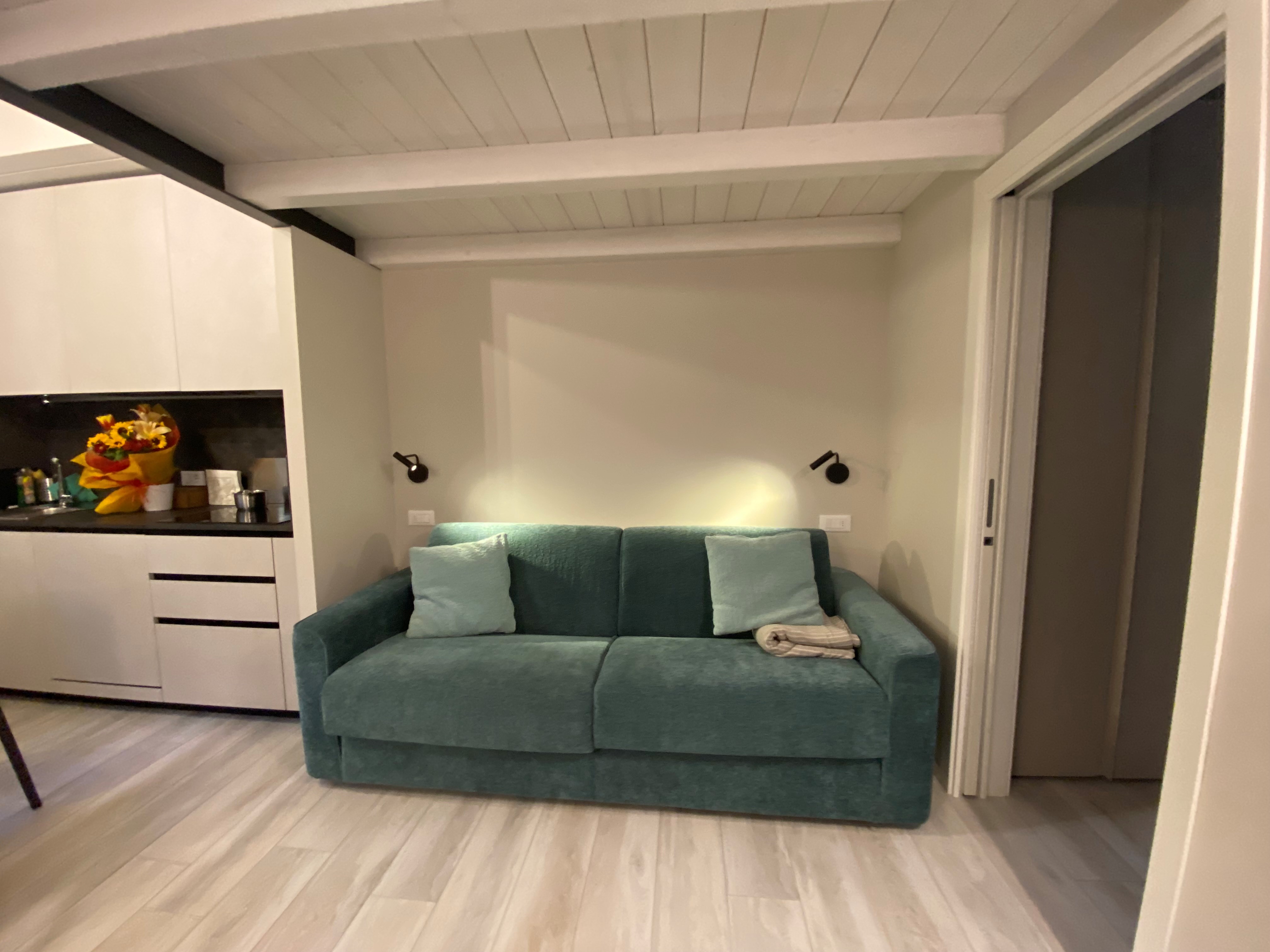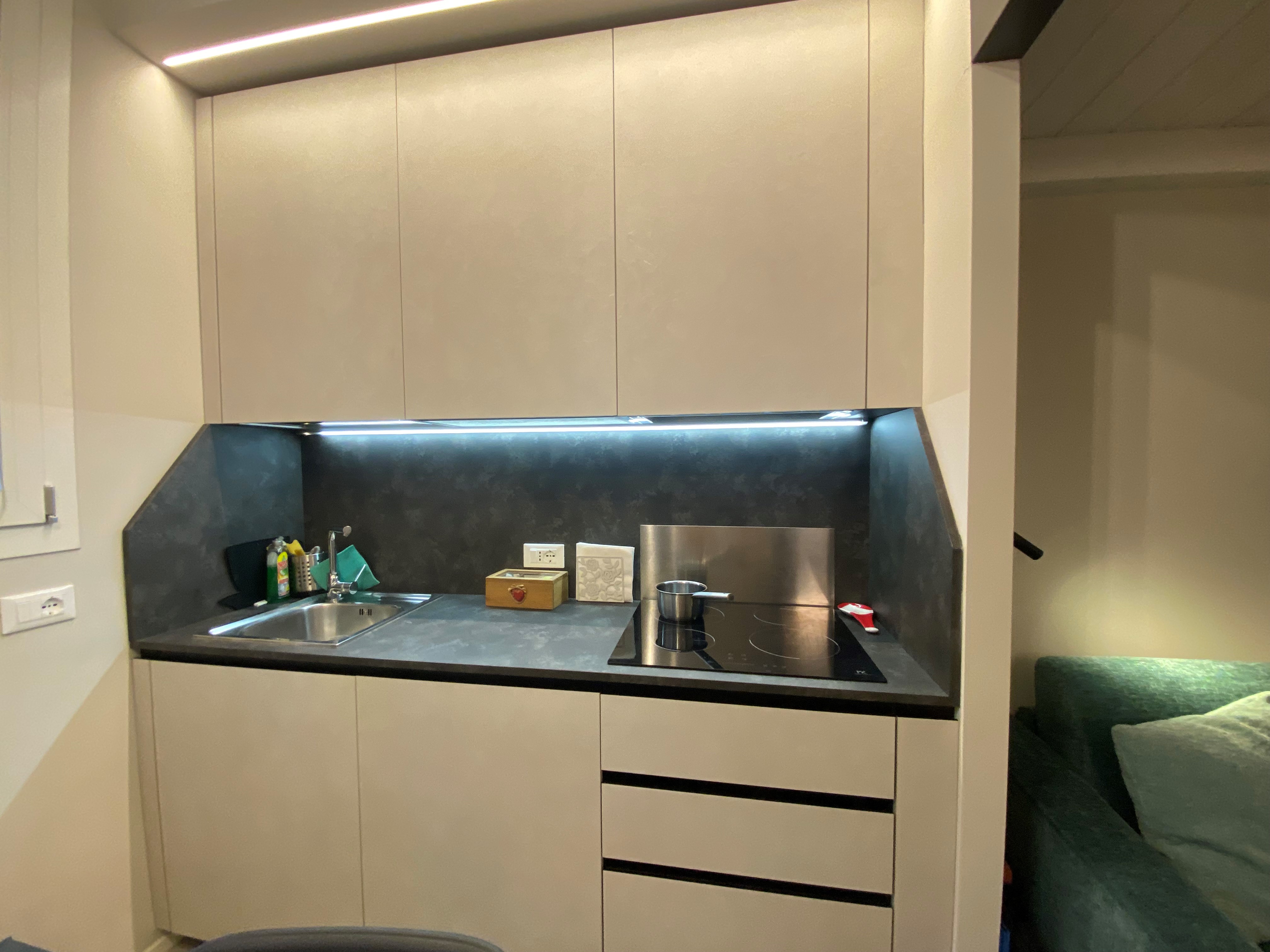 COMPOSTO DA SOGGIORNO CON ANGOLO COTTURA, ZONA NOTTE CON SOPPALCO, CABINA ARMADIO E BAGNO.