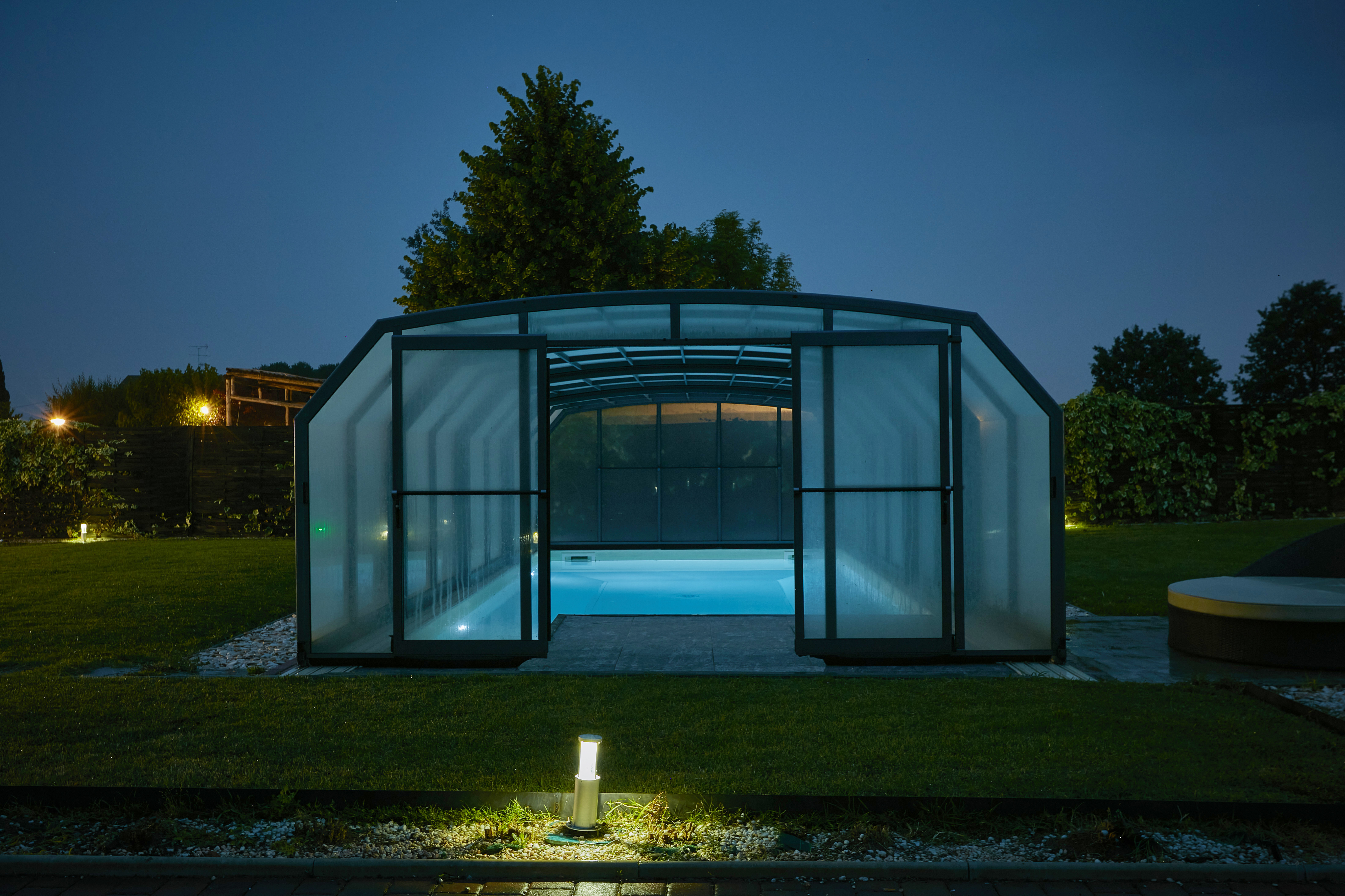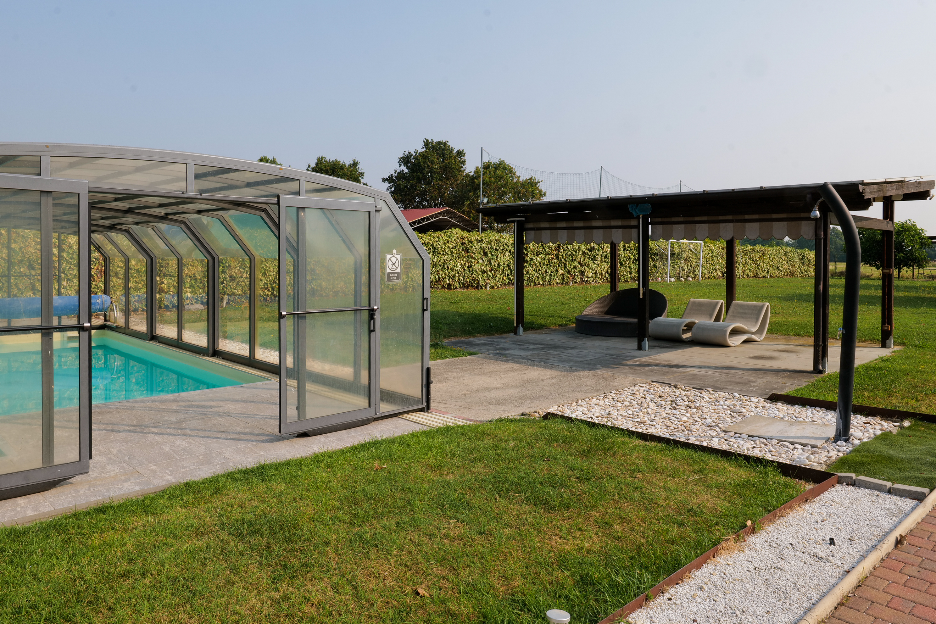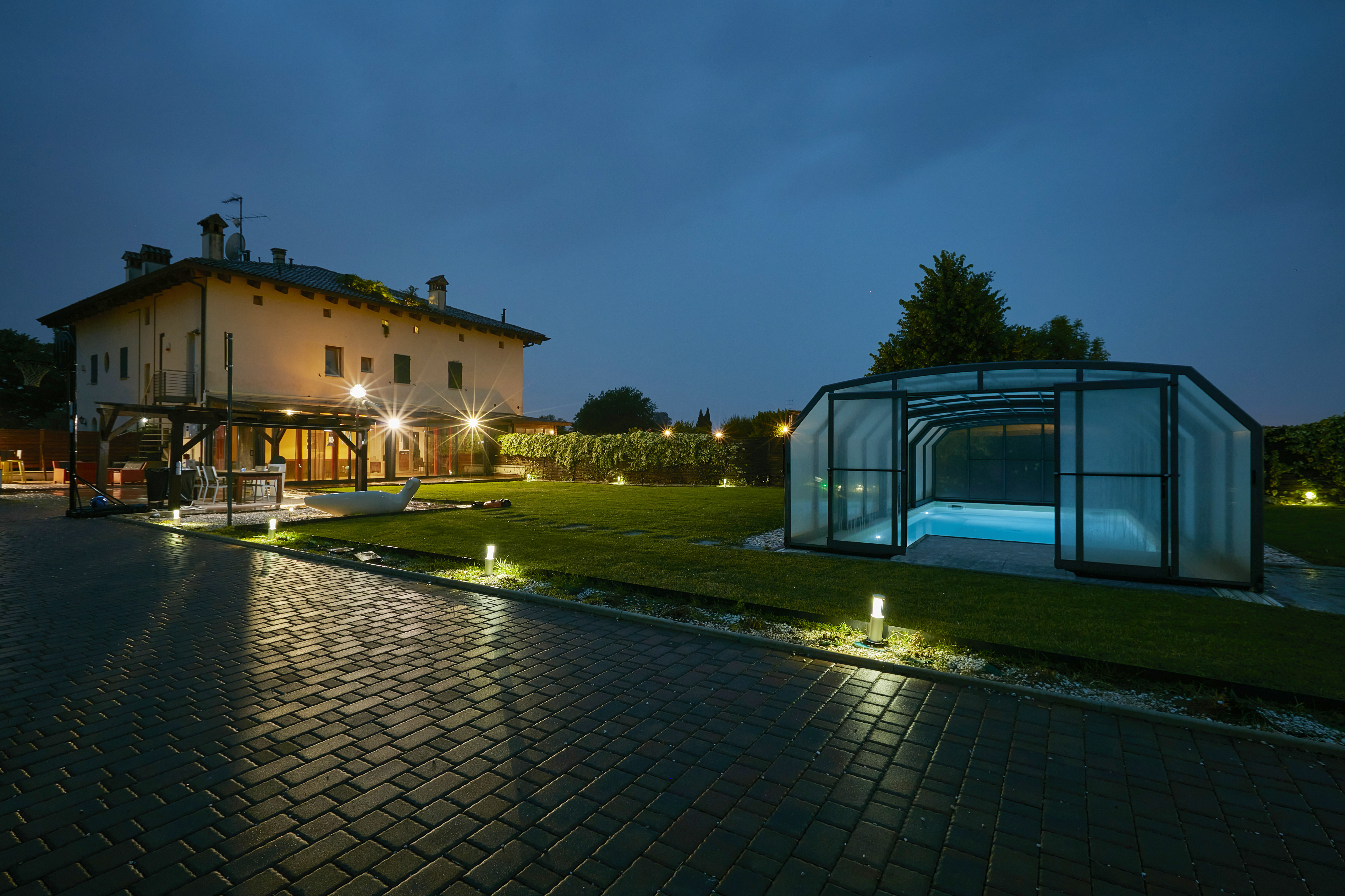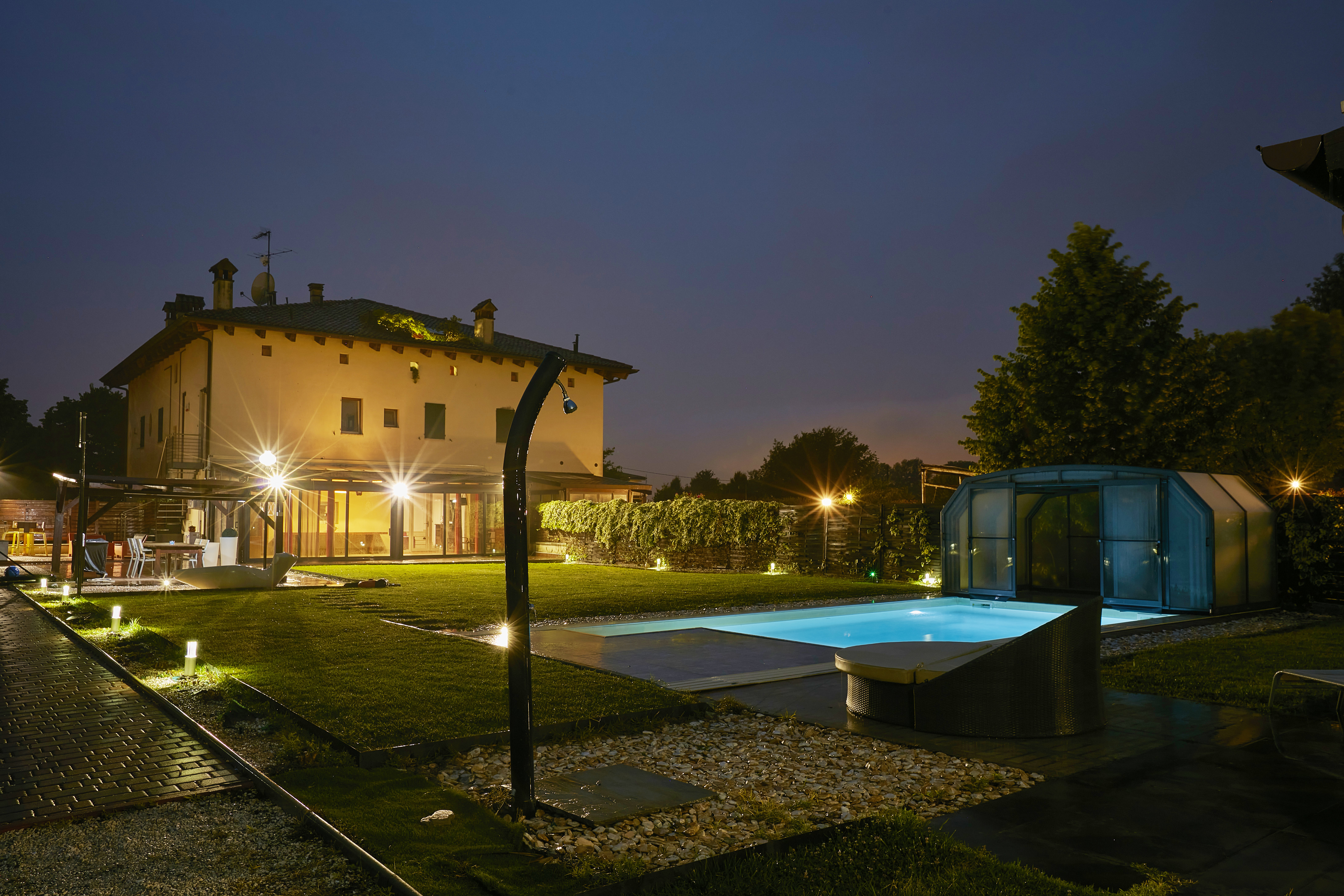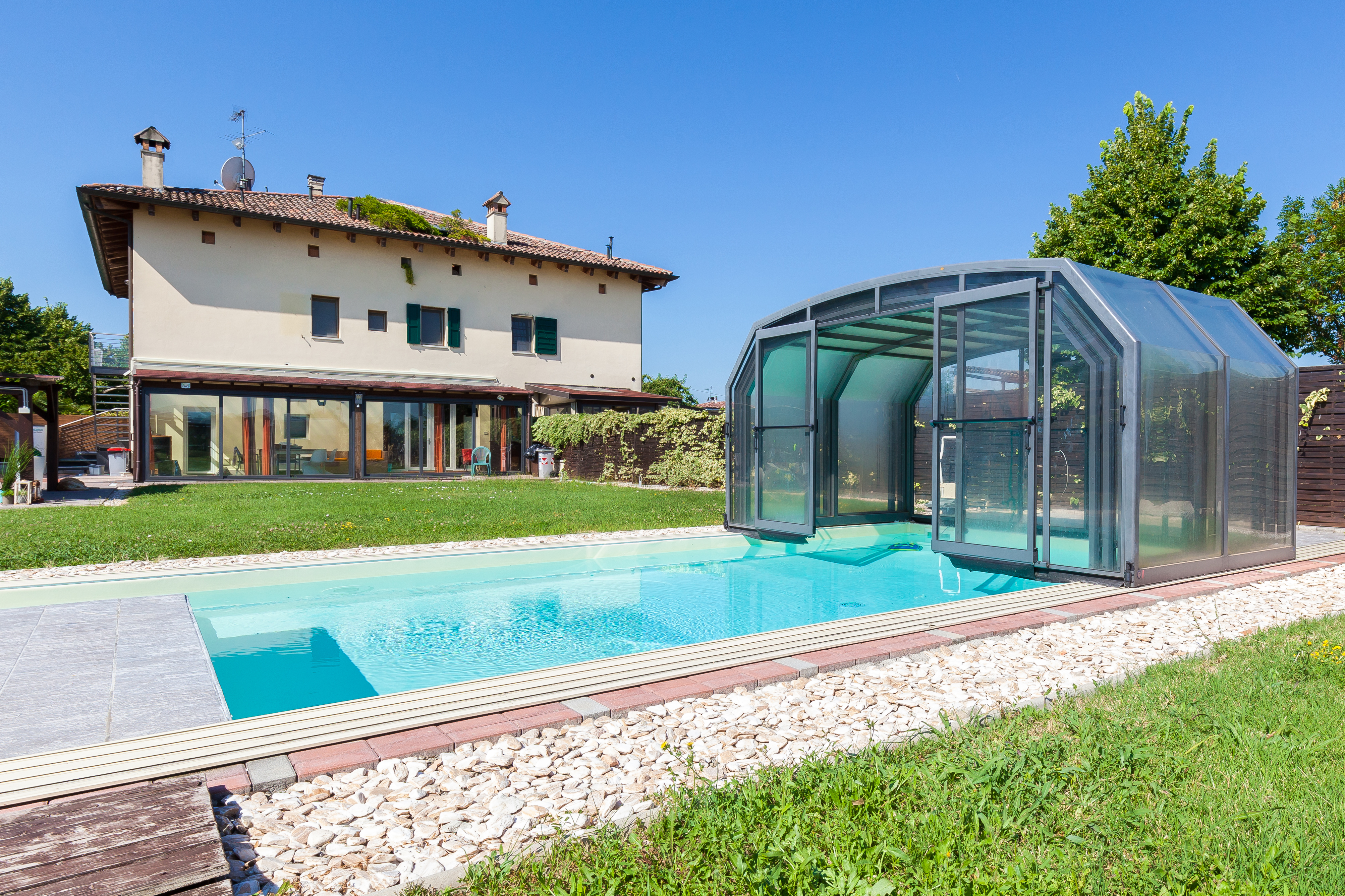 LA PROPRIETÀ È CIRCONDATA DA UN AMPIO GIARDINO PRIVATO DI CIRCA 2.000 MQ, CURATO E COMPLETAMENTE RECINTATO, ARRICCHITO DA UNA BELLISSIMA PISCINA RISCALDATA CON POSSIBILITÀ DI COPERTURA INVERNALE TRAMITE CUPOLA TRASPARENTE.