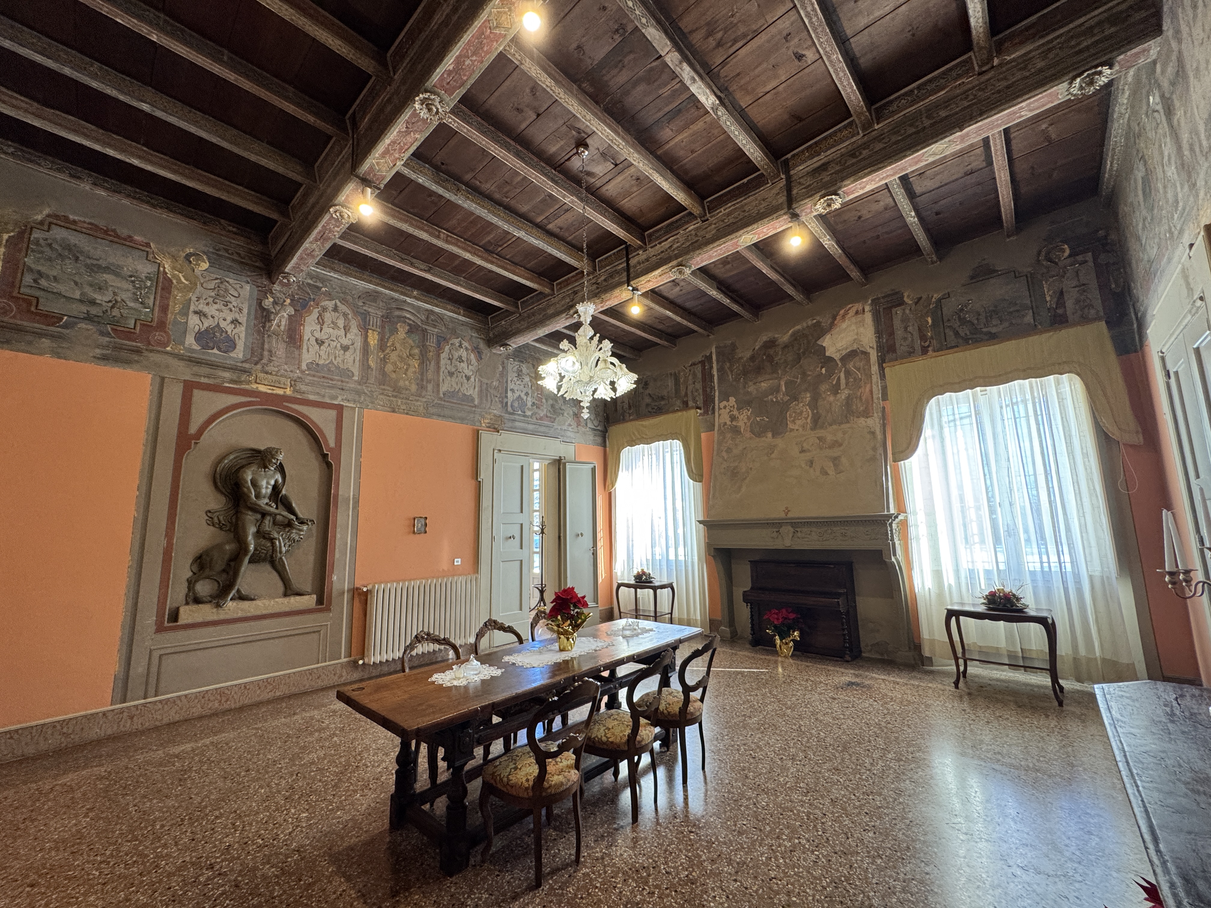 LE SALE STORICHE DEL PIANO TERRENO, DECORATE CON RAFFIGURAZIONI MITOLOGICHE E PAESAGGISTICHE, SI PRESTANO PERFETTAMENTE A RICEVIMENTI ELEGANTI E MOMENTI DI RAPPRESENTANZA.