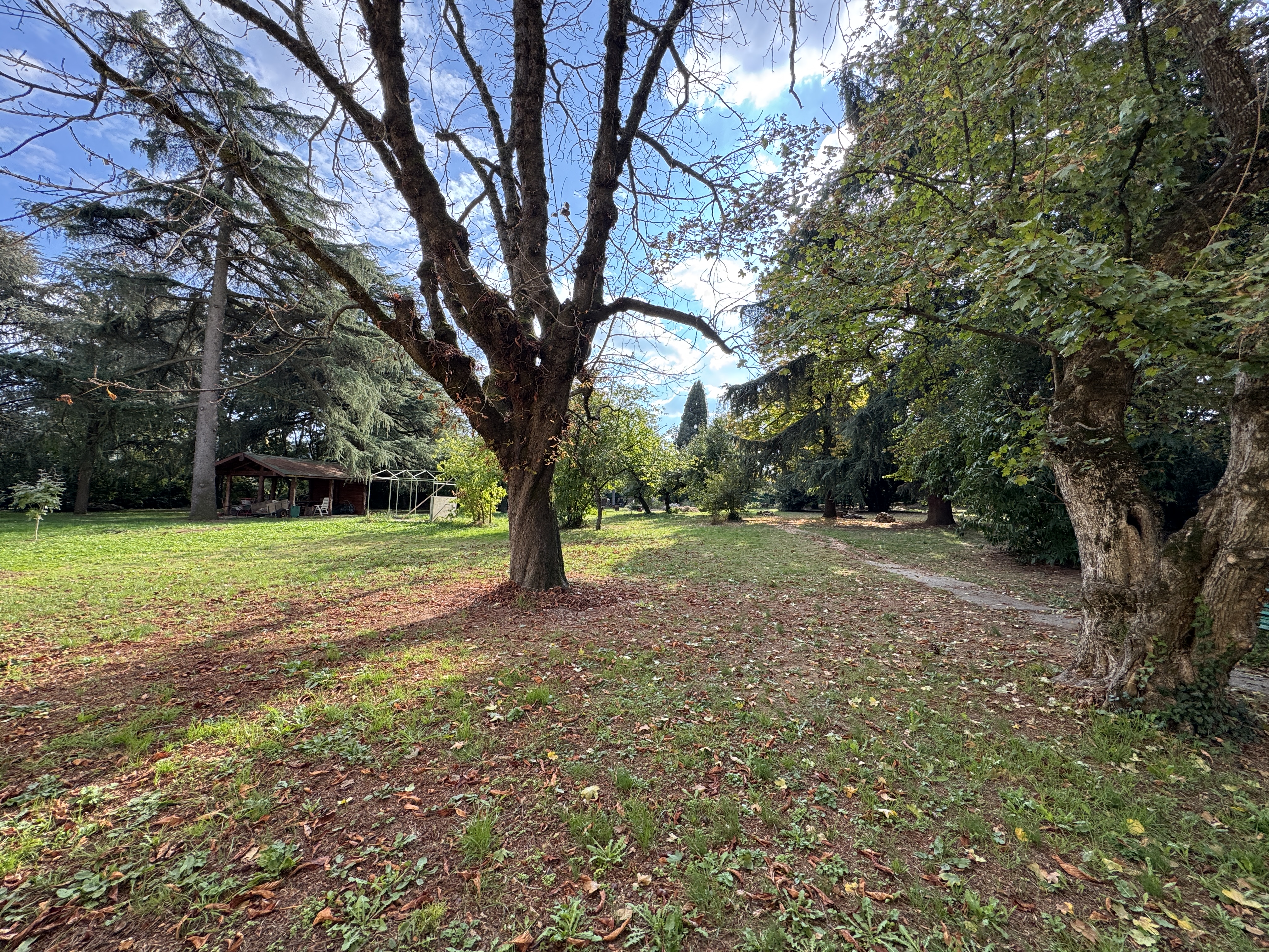 ALL’ESTERNO, IL PARCO DI CIRCA UN ETTARO ACCOGLIE ESEMPLARI SECOLARI DI QUERCE, PINI E TASSI, OFFRENDO SCORCI NATURALI DI RARA BELLEZZA. IL GIARDINO ALL’ITALIANA, CON PARTERRE DI BOSSO DALLA CARATTERISTICA FORMA SEMICIRCOLARE, COMPLETA LA PROPRIETÀ CON UN’ELEGANTE CORNICE VERDE.
